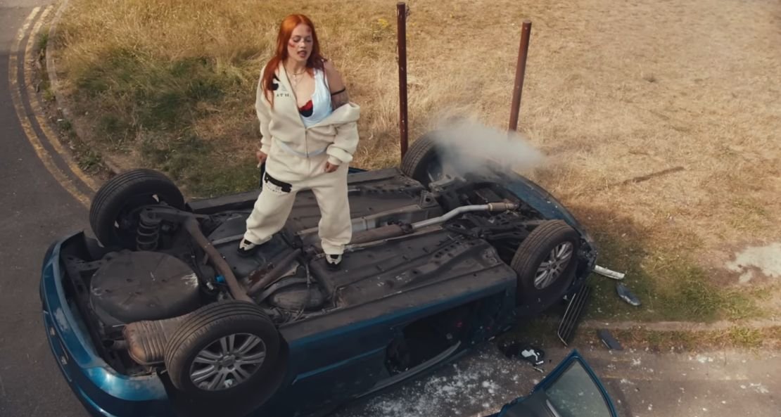 The video doesn’t soften it either. A flipped car, steam curling off the bonnet, scratches she doesn’t bother to hide.